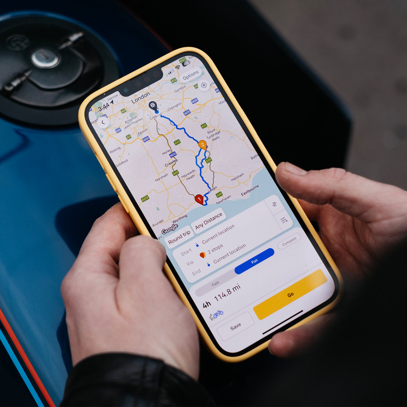 Find fast routes, twisty roads, or scenic backroads in seconds, tailored to your riding style.
