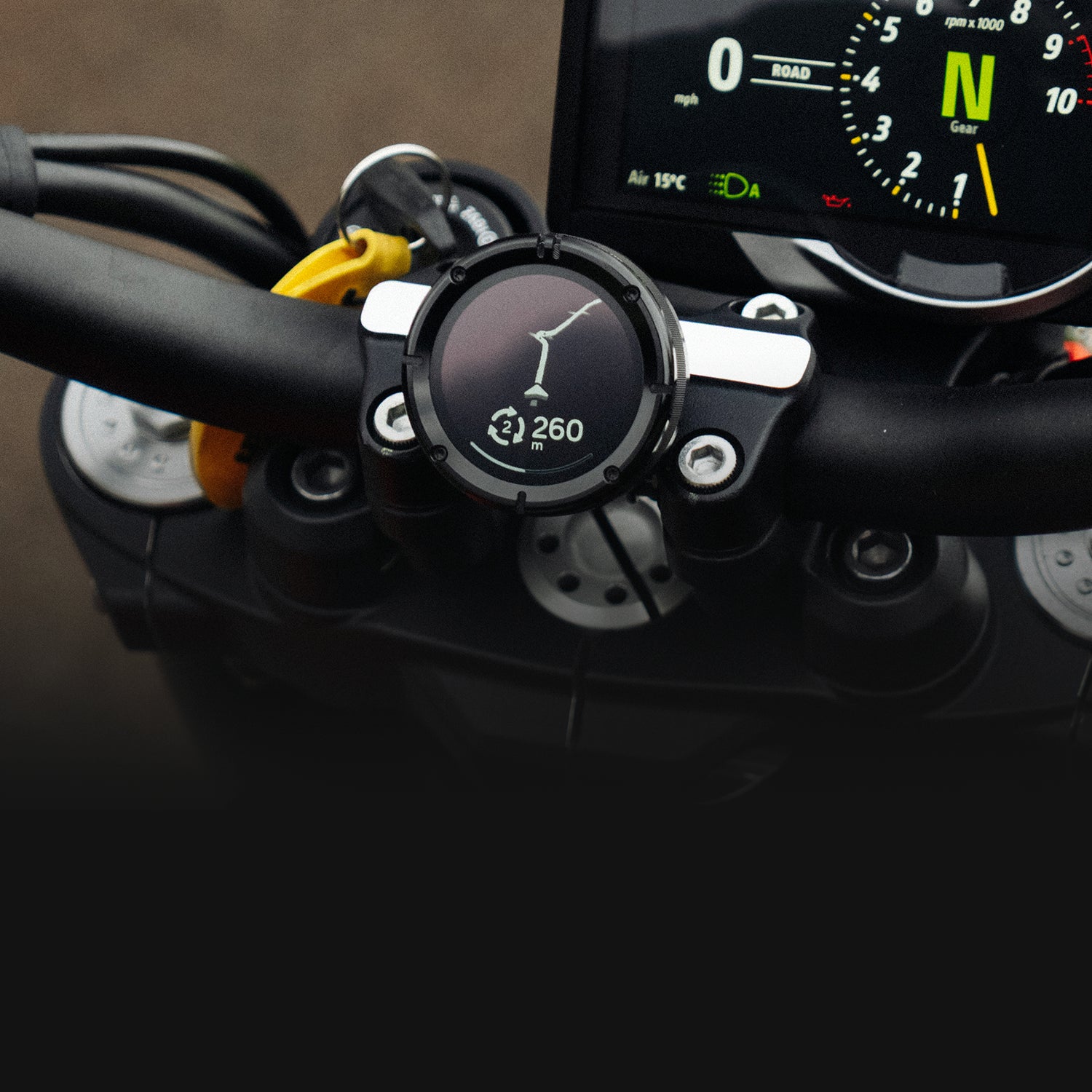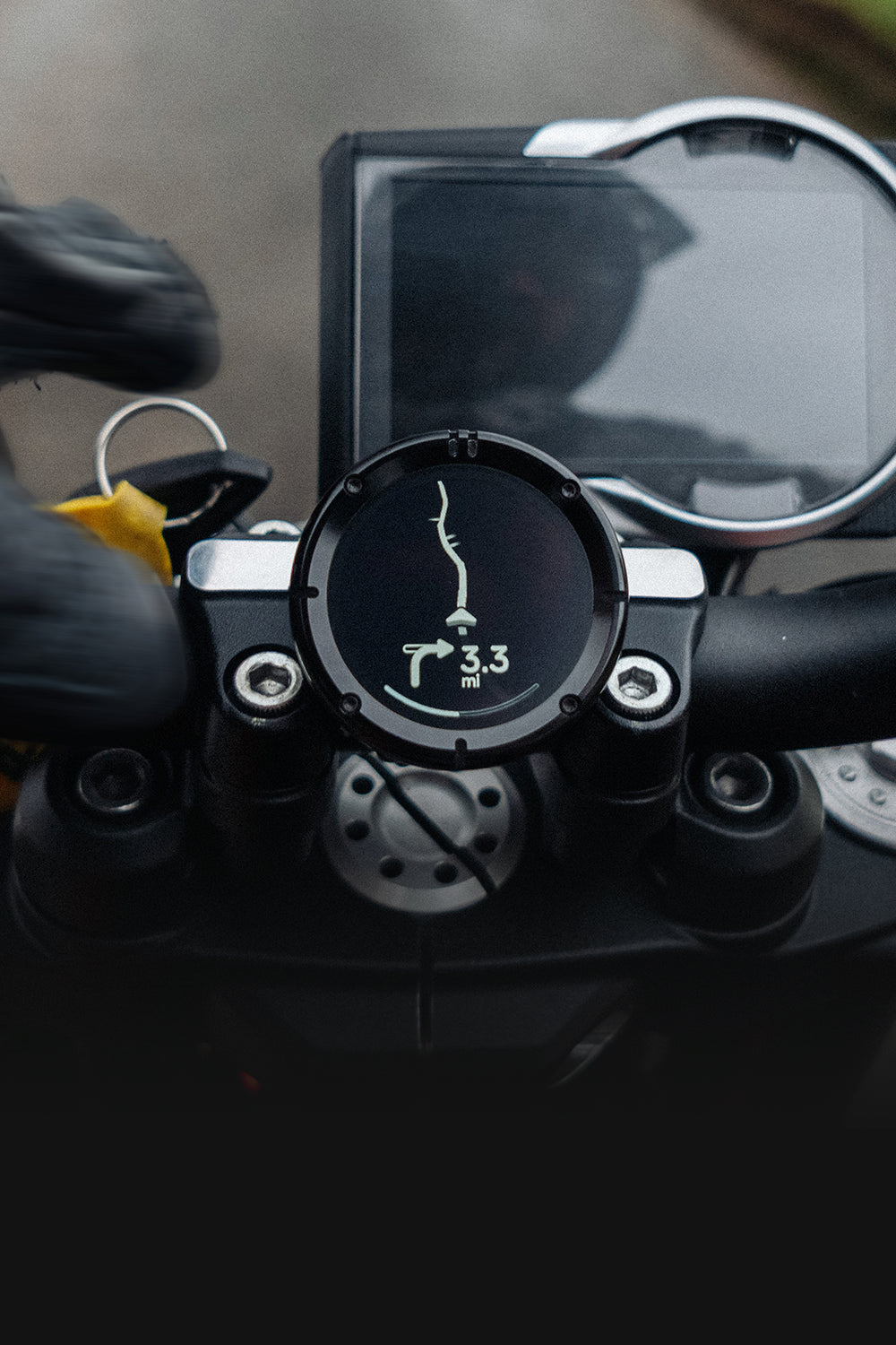 Put your phone away. Get clean, turn-by-turn directions on a display designed for riding focus, no maps, no clutter, just the next move.